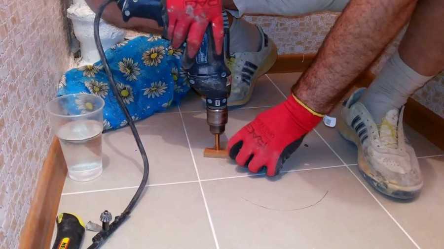 - Проделать технические отверстия в уже созданной отделке из керамогранита или в простой керамической плитке;
