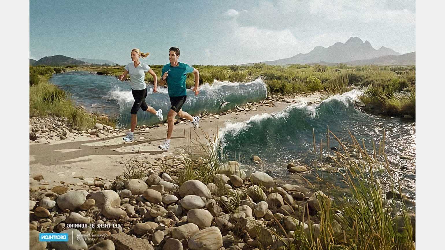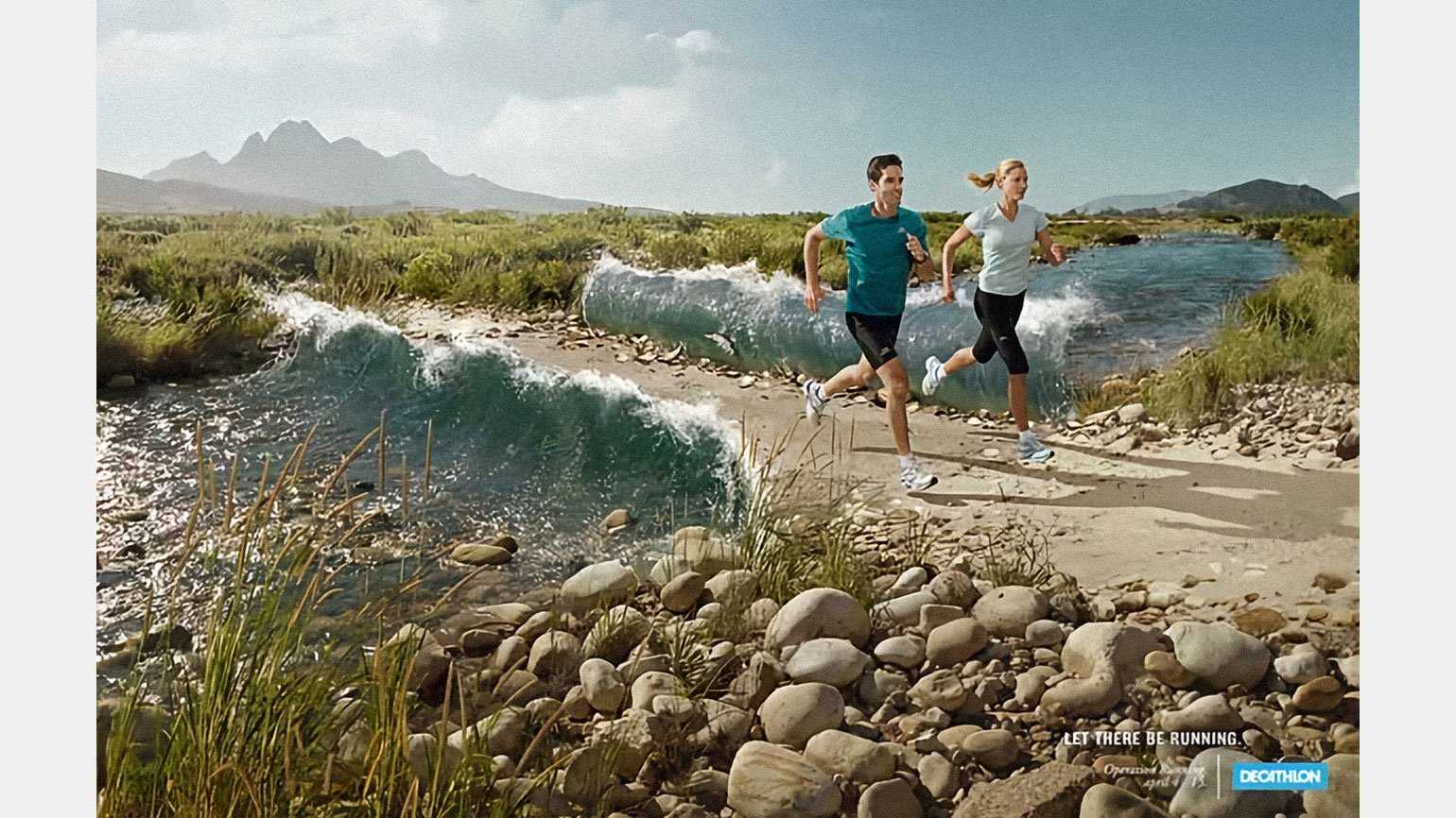Реклама Decathlon. Люди с лёгкостью занимаются пробежкой в хорошую погоду — нисходящая диагональ подчёркивает это настроениеИзображение: Decathlon / VMLY& R