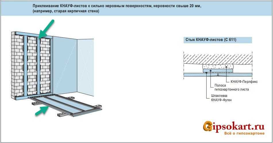 Отлично оклеиваются гипсокартоном поверхности, неровности которых составляют не более 5 мм.