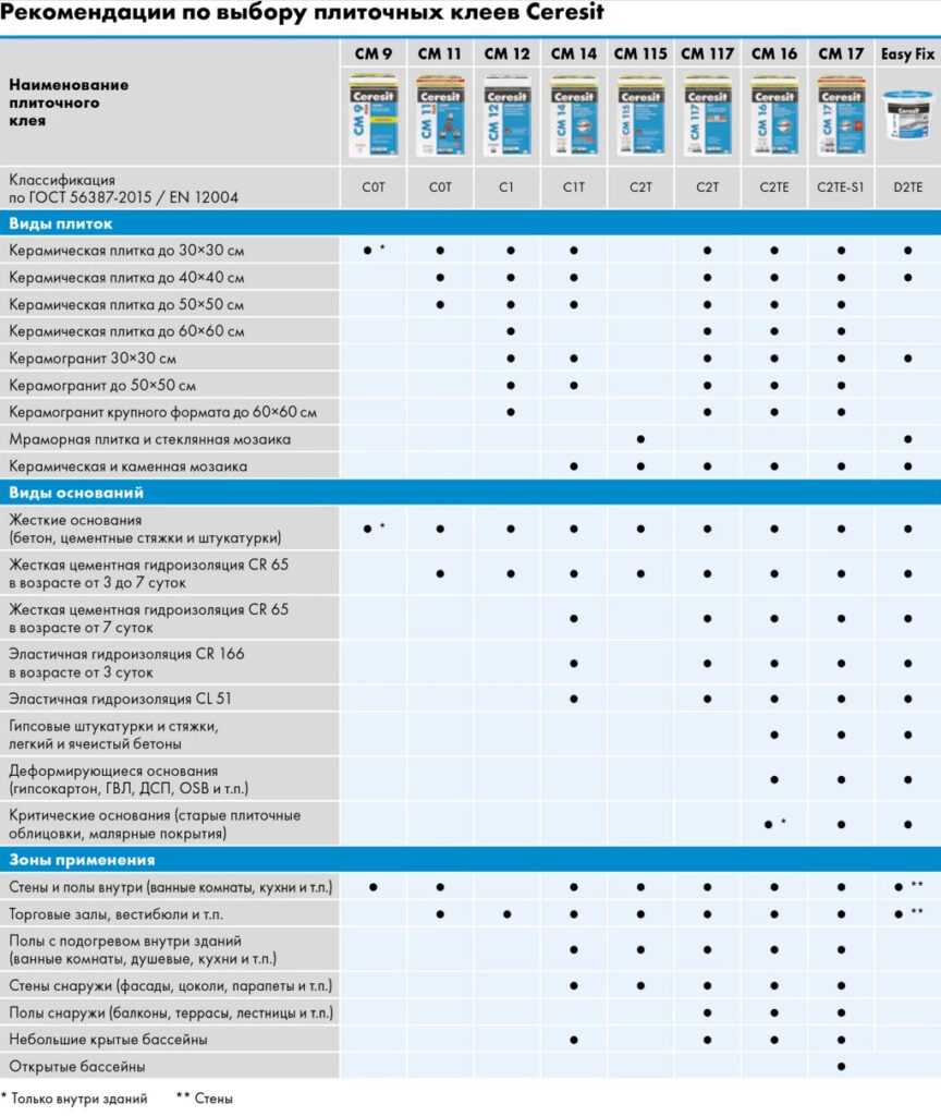 Плиточный клей делится на 3 основных типа согласно стандарту EN 12004 «Клей для керамической плитки»: