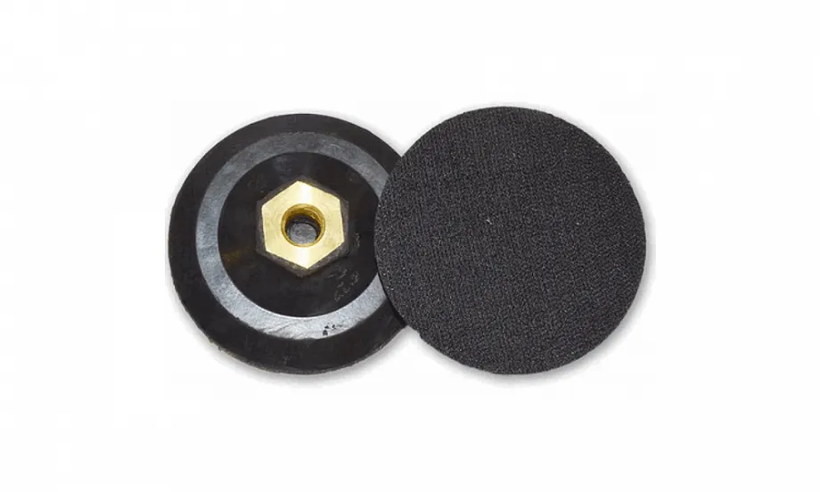 Начнем с того, что для работы со шлифовальными дисками такого типа нужна специальная насадка-адаптер, которая накручивается на вал редуктора болгарки (угловой шлифовальной машины) вместо прижимной гайки. Такие насадки могут иметь 100 мм или 125 мм в диаметре, как и сами «черепашки». Во всяком случае, они предназначены для небольших УШМ, которые легко удерживать в руке на протяжении продолжительного времени. Сама «черепашка» с тыльной стороны абразива имеет липучку для наклеивания на адаптер и во время работы (трения), сцепление ведет себя превосходно, хотя снять (отклеить) круг довольно-таки легко.