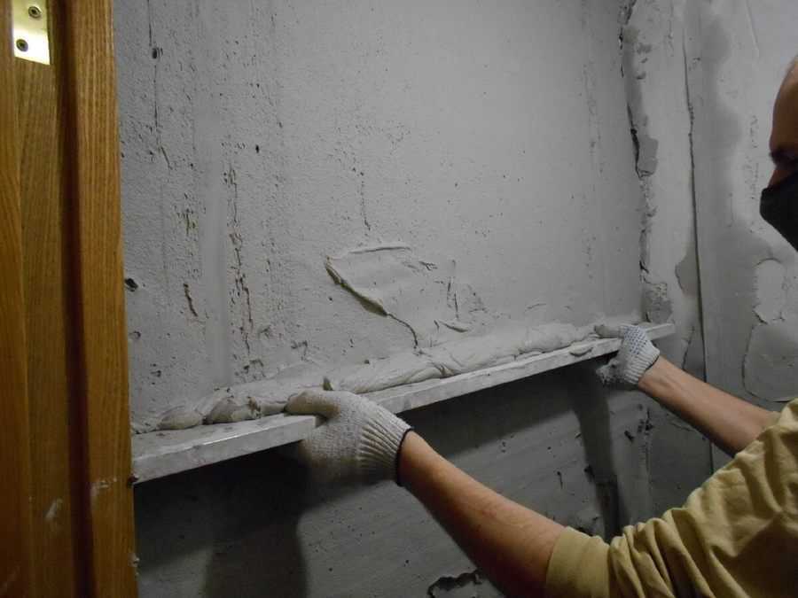 Процесс мало чем отличается от выравнивания стен в любой другой комнате. Главное, это заранее смонтировать электропроводку и следить, чтобы на неё не попадала вода, что может случиться при ремонтных работах.