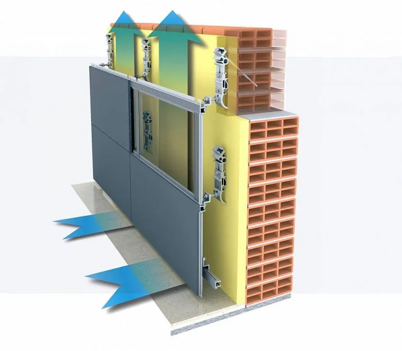 Кронштейны алюминиевой подсистемы включают подкладки из полиуретана или поливинилхлорида для того, чтобы снизить риск возникновения «мостиков холода» через контакт кронштейн-стена. Поскольку эти кронштейны в основном «спрятаны» за облицовочными панелями и, кроме того, присутствуют в относительно малом количестве, то они вряд ли могут оказывать значительное влияние на общее возгорание облицовки фасада.