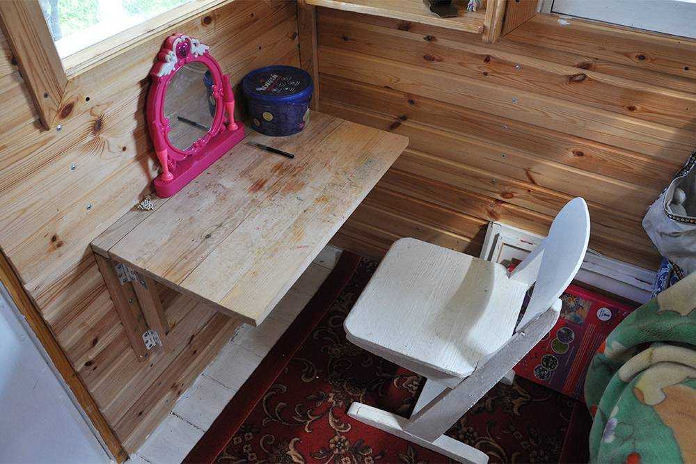 Не забываем про отделочные материалы. Фанеру и элементы из дерева следует обработать пропиткой против паразитов и коррозии, кроме того, она повысит показатели пожаробезопасности. Это необходимо сделать для долговечности сооружения и безопасности детей. Снаружи деревянный домик вскрывается лаком или краской. Желательно использовать водоэмульсионную либо акриловую.
