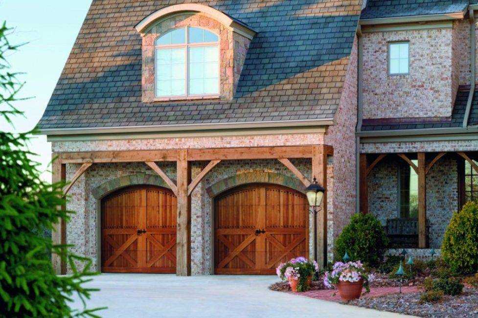 Отдельно стоящие гаражи традиционно считаются подсобными зданиями. Нередко при их возведении применяют недорогие строительные материалы, а об отделке зачастую даже не думают. В отличие от этого гаражи, встроенные в ансамбль дома выдержаны в одном стилистическом ключе: цвет, отделка, кровля.