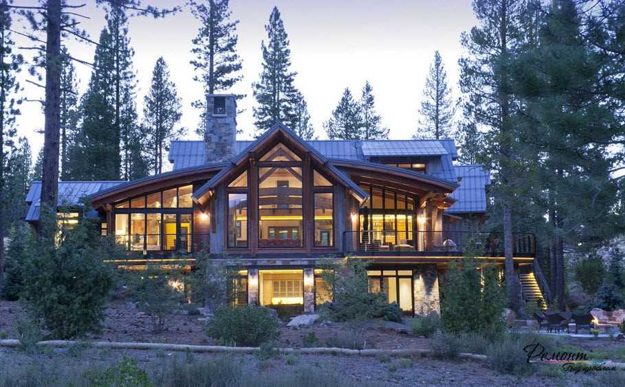 Дом в стиле A-frame Во-первых: такая конструкция выглядит красиво и утонченно. Во-вторых: визуально она напоминает шалаш. Как видно форма остроконечная, крутая, высота от земли минимальная. Поэтому часть крыши будут составлять стеновые перекрытия.