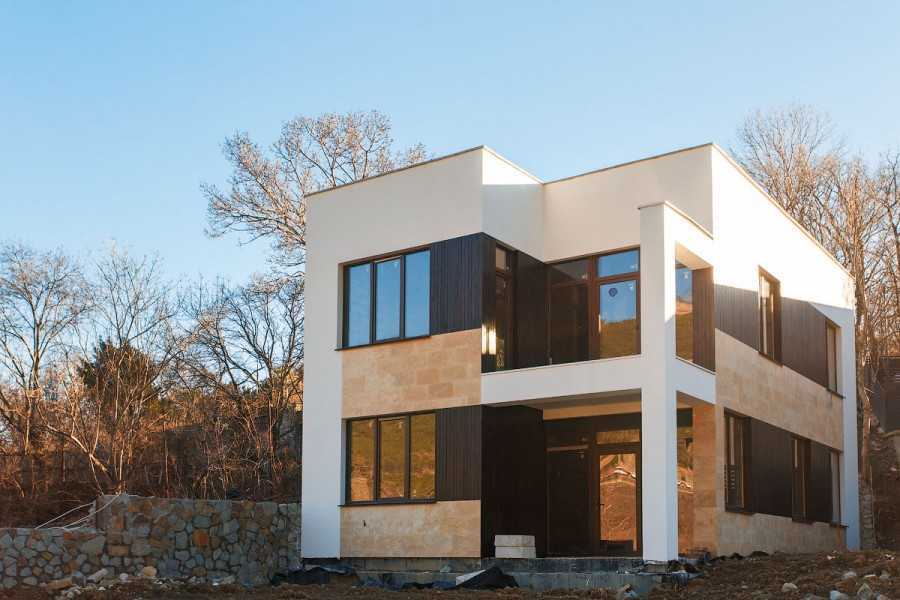 Отделка фасада дома в стиле хай-тек камнем