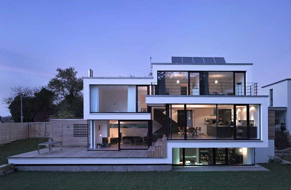 Дом с панорамными окнами в стиле хай тек