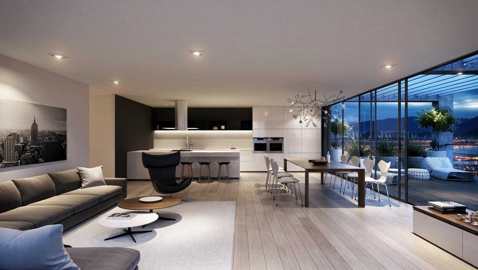Из-за минимального количества барьеров и перегородок внутреннее пространство дома хай-тек остается просторным. Если это многоэтажный коттедж, первый этаж становится самым функциональным местом. Он должен быть оборудован максимально комфортно. К отделочным материалам для внутренних работ предъявляются жесткие требования. Элементы роскоши и всякие излишества недопустимы. При оформлении помещений должна просматриваться простота и лаконичность: