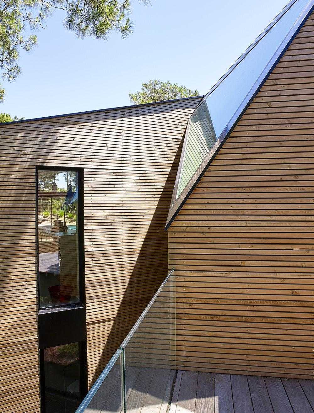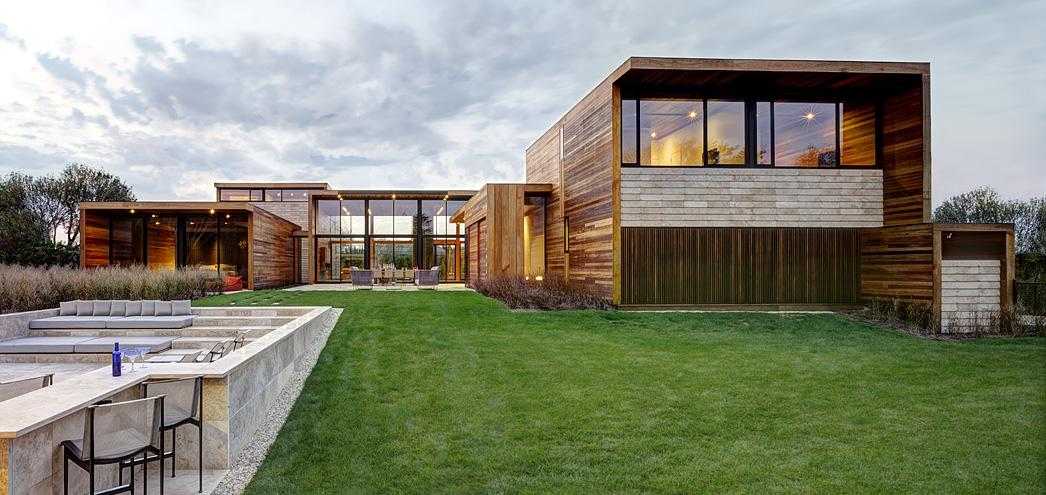 , и сегодня нередко для отделки домов используют дерево, а также кирпич. Зачастую в качестве элементов минималистского декора. Эти материалы комбинируют с металлом, пластиком или бетоном. Фасад деревянного дома в стиле био-тек (бионический хай-тек) может быть выполнен из профилированного или клееного бруса, а также бревен. Дом может быть частично декорирован блоками из кирпича, придающими ему более элегантный вид.