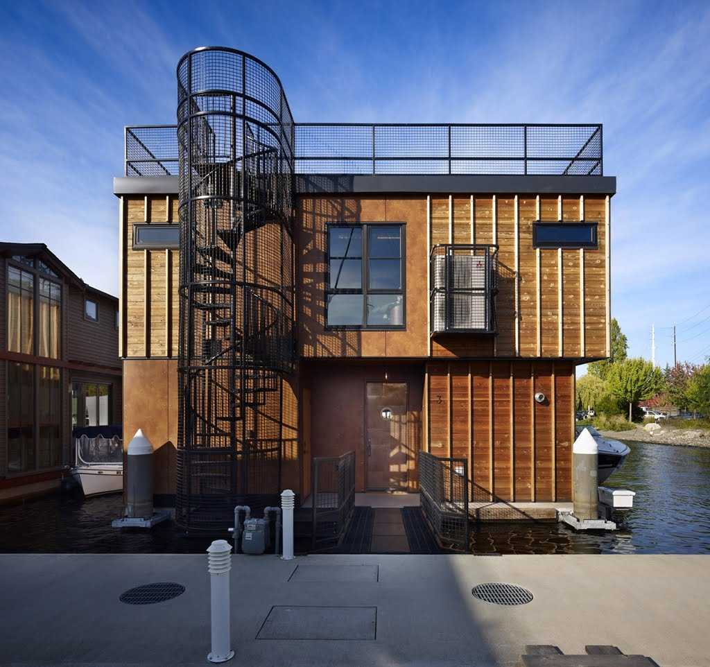 Индустриальный хай-тек заключается в имитации интерьера фабрики. То есть независимо от размеров дома, элементы коммуникаций могут быть вынесены на фасад. Различные трубы, металлические детали и прочие необычные элементы – отличное дополнение данного стиля. Подойдет он далеко не всем, а только тем, кому по душе сдержанность в интерьере.