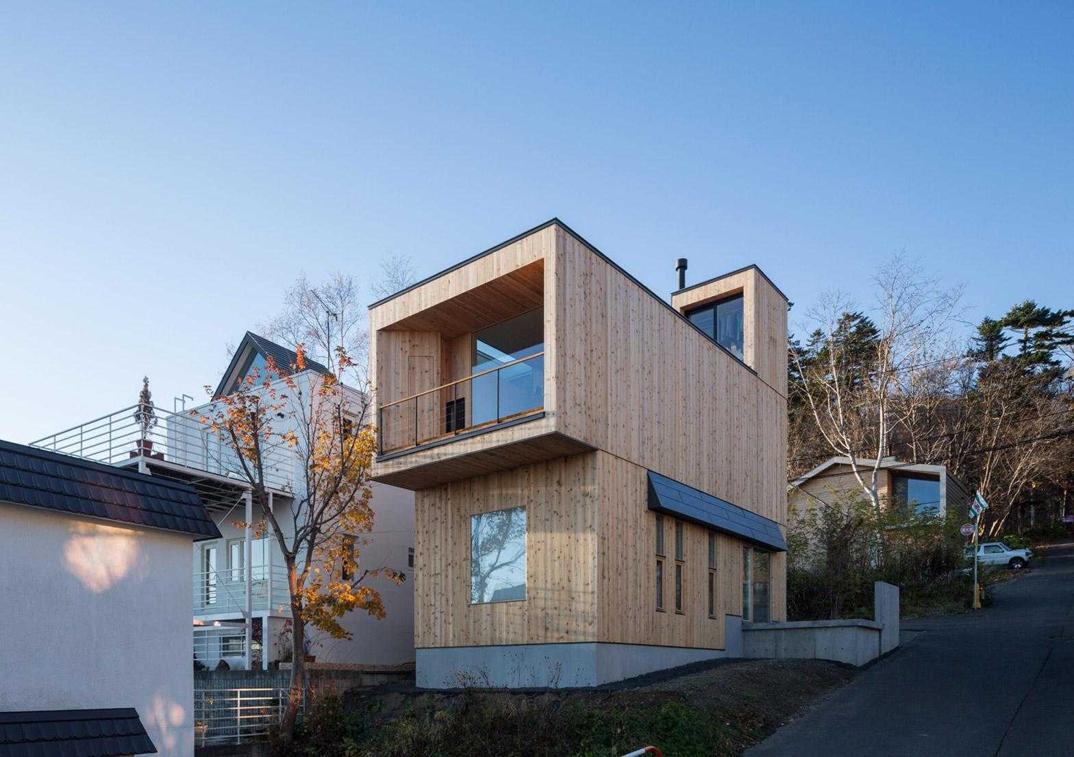 Фасад дома лаконичен и строг. Зачастую выполнен в серых, металлических тонах, могут быть также использованы контрастные сочетания. Для подсветки фасада часто используют неоновые лампы.