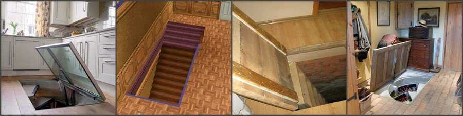 - Вход в хранилище должен находиться в удобном для вас месте (рисунок 2). Например, в гараже, коридоре или рядом с кухней. Сверху вход лучше прикрыть люком, а для входа сделать лестницу. Как именно вы будете спускаться внутрь необходимо определить еще на этапе проектирования и рытья котлована.