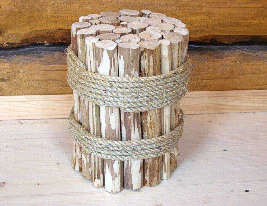Сельскую изюминку добавят табуреты классической или современной формы. Домашние умельцы делают их самостоятельно, применяя искусство плетения из лозы, тростника, бамбука и веревок. Интересный вариант для самых смелых – несколько скрепленных вместе тонких чурок.