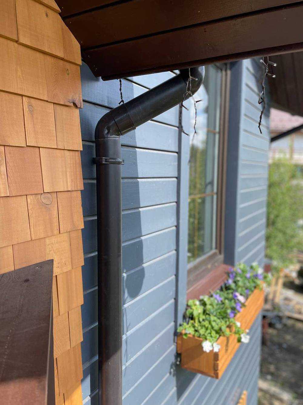 Облагородили окна. Их отделали наличниками и поставили металлические отливы — это что-то вроде внешнего подоконника, по которому стекает вода от дождя. Еще мы решили у каждого окна снаружи повесить ящики под кашпо, чтобы посадить там растения. И еще — сделать ставни. Ставни несут только декоративную функцию и намертво прикручены к фасаду, закрыть их нельзя.