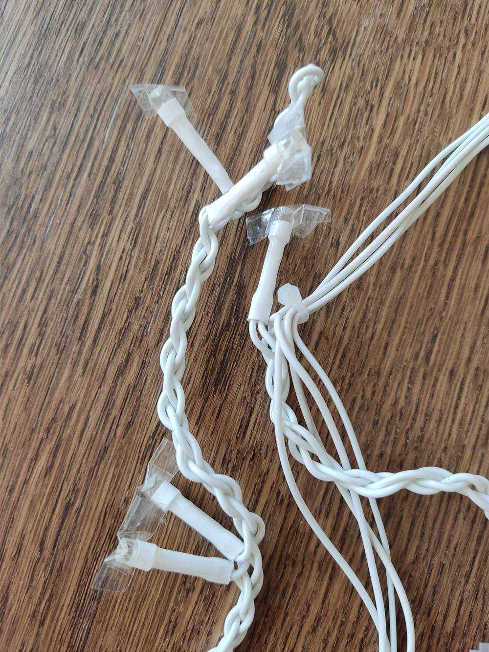Понадобились две 12-метровые гирлянды — по 3290 Р каждая. Основная проблема была в том, что провод гирлянды белого цвета и сильно выделялся на коричневой подшивке крыши. Другие виды бахромы с темными проводами строили гораздо дороже. В итоге я купил баллончик коричневой спрей-краски и покрасил гирлянду. При этом каждое стеклышко заклеил прозрачным скотчем, чтобы не окрасились. Пришлось повозиться три-четыре часа, но результат того стоил — гирлянды почти незаметны на фасаде.