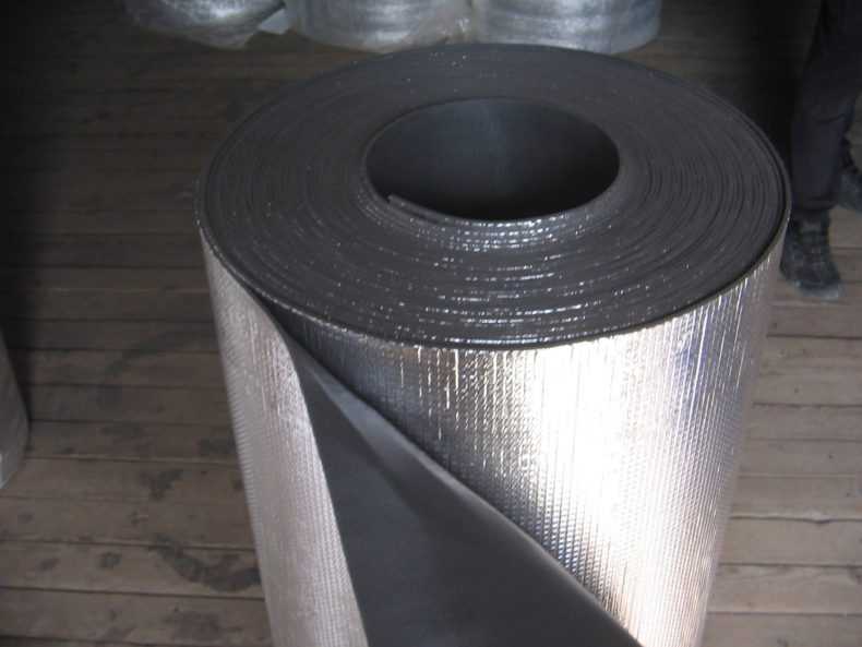 - Тип А. Выпускается толщиной 3, 4, 5, 8 и 10 мм с односторонним фольгированием. Ширина листов 1200 мм, длина от полутора до трёх метров. Используется в качестве теплоизоляции совместно с другими утеплителями, а также для изоляции инженерных систем: труб, горячих и холодных, канализационных стояков и звукоизоляции.