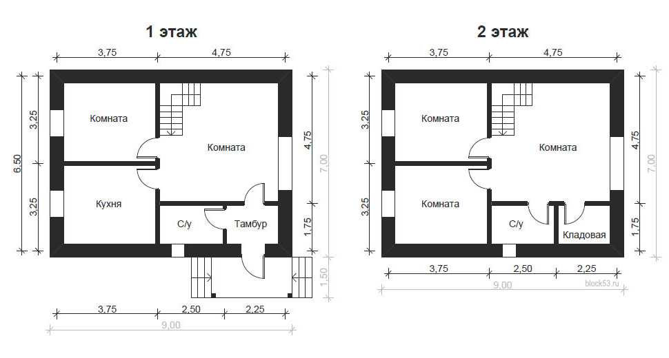 Один из самых простых и распространённых примеров дома 7х9 с мансардой представлен на схемах.