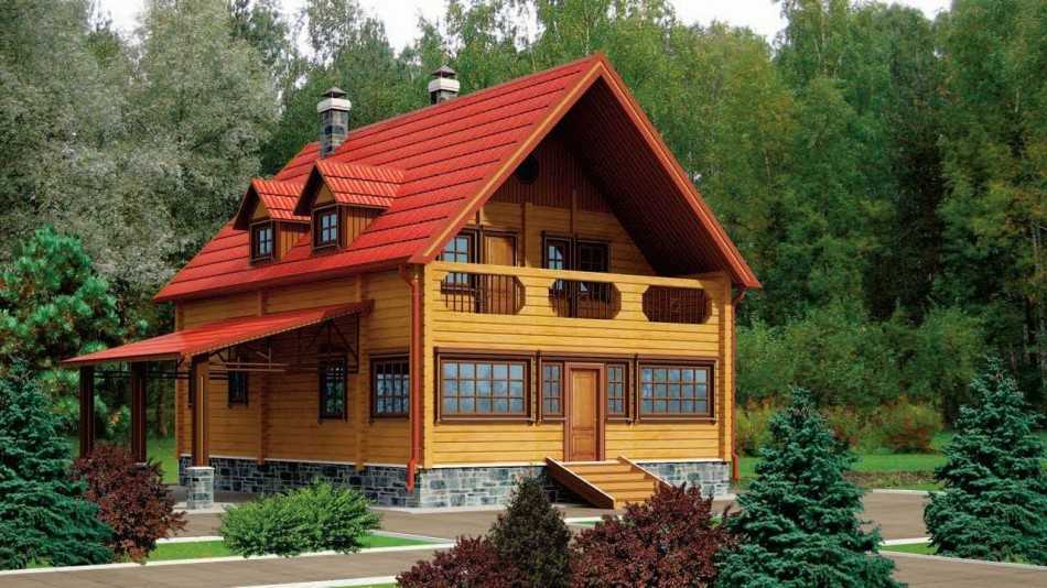 Традиционно описываемые проекты разрабатываются с учетом использования дерева как основного материала. Если выбрать для обозначенных целей дуб или лиственницу, если потом за домом правильно ухаживать и вовремя обрабатывать его антисептическими пропитками, он простоит вечно. Вес деревянного дома позволяет закладывать ленточный фундамент. Его вполне достаточно, и это огромная экономия средств.