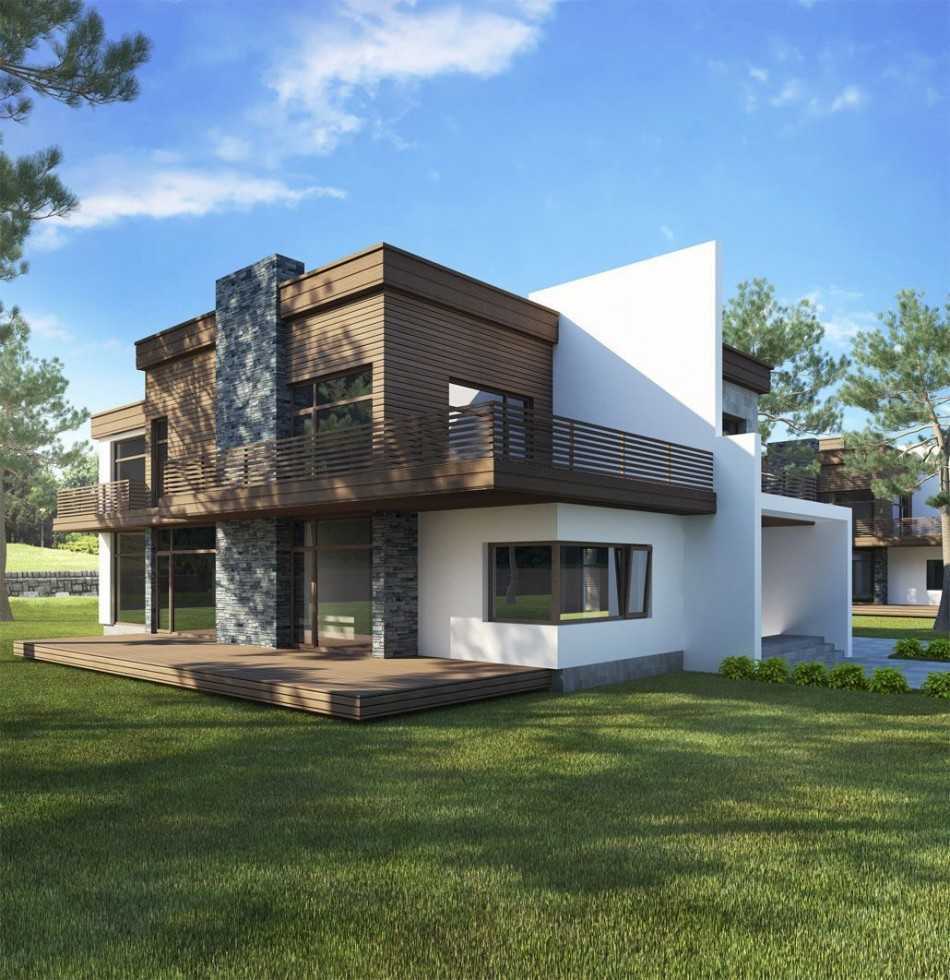 Такие дома смотрятся одинаково хорошо и из бревна, и из кирпича. Деревянный дом может быть выполнен в стиле шале или русском, кирпичный – может представлять собой более современное сооружение, воплощающее минимализм или лофт.