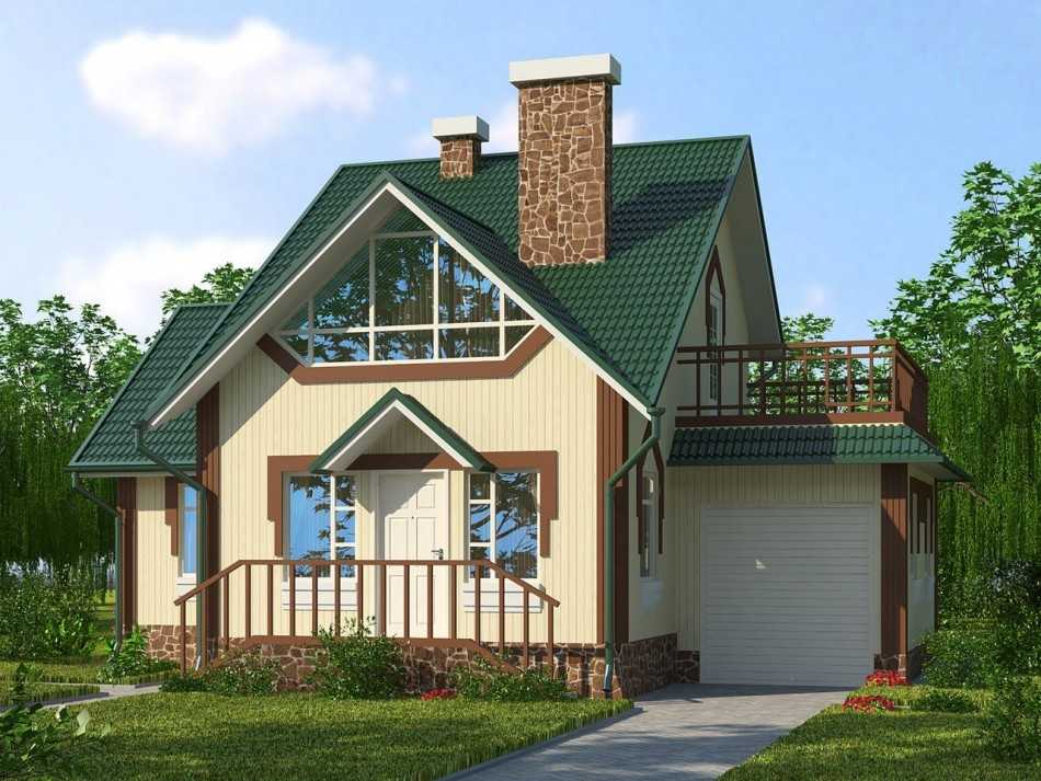 Нередко можно встретить дома с пристроенным гаражом, особенно если это дом, выполненный в американском стиле. Именно такие постройки имеют всё необходимое — гостиную, кабинет, несколько спален и кухню. Причём спальные обычно в домах 5х7 находятся на втором этаже. Гараж можно как пристроить, так и строить отдельно, но в таких домах тенденция склоняется к пристройке.