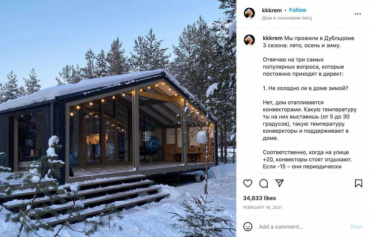 Мне часто пишут, что «Дубльдом» простоит «всего 70 лет». Но я не планирую столько лет жить в нем. Дом — наш первый проект, мы хотели понять, каково это — жить на природе, насколько это нам нравится. Возможно, мы захотим вернуться в квартиру или переехать в другую страну. А может быть, у нас будет большая семья, для которой наш дом покажется маловат.