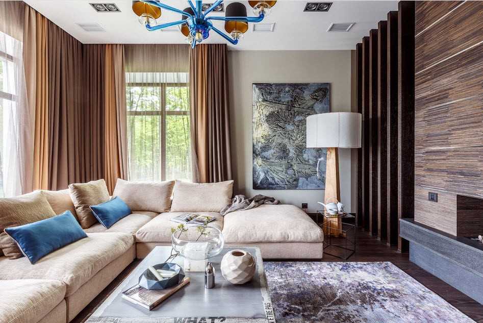 Декорируют комнату с печью по минимуму. Здесь лучше не использовать яркую расцветку и аксессуары. Рекомендовано сделать акцент на 2-3 основных цветах.